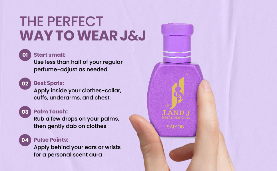 Start with less than half the quantity of your traditional perfume or attar and then increase gradually. Apply it on the inside of your cloths { collar, under arm, upper front facing and cuff etc.}. You can also apply by rubbing a few drops on your palm and gently dabbing on your clothes or by rubbing a few drops behind your ears or on your wrist.