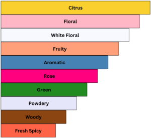 ➢ Middle notes are Lemon, Honeysuckle, Rose, Grapefruit, Lily, Mint and Violet.