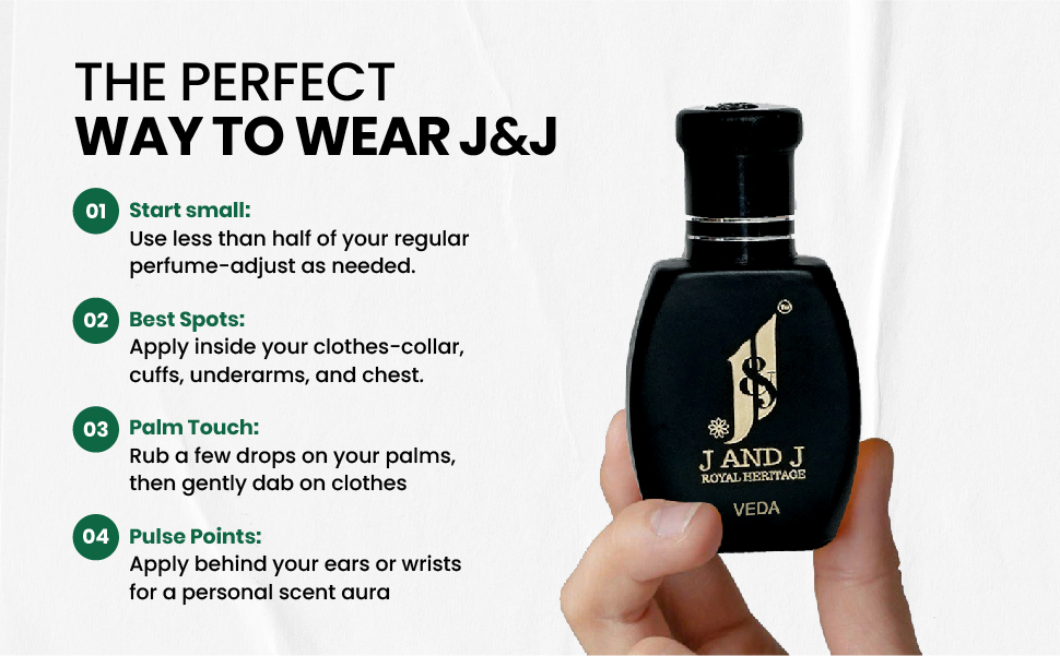 Start with less than half the quantity of your traditional perfume or attar and then increase gradually. Apply it on the inside of your cloths { collar, under arm, upper front facing and cuff etc.}. You can also apply by rubbing a few drops on your palm and gently dabbing on your clothes or by rubbing a few drops behind your ears or on your wrist.