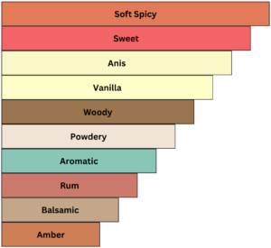 ➢ Base notes are Vanilla, Praline, Vetiver, Cedar and Labdanum.