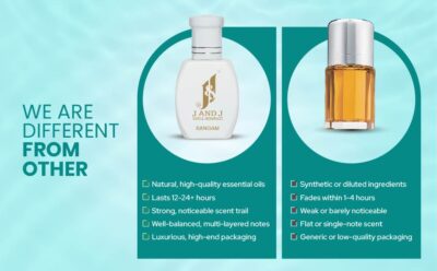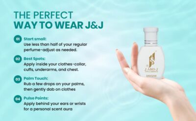 Start with less than half the quantity of your traditional perfume or attar and then increase gradually. Apply it on the inside of your clothes { collar, underarm, upper front facing and cuff etc.}. You can also apply by rubbing a few drops on your palm and gently dabbing on your clothes or by rubbing a few drops behind your ears or on your wrist.