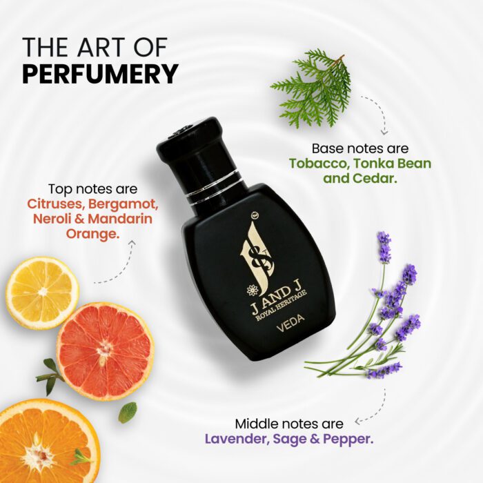 “Veda” by J&J. “Veda” is an Aromatic Fougere fragrance for Men. “Veda” was launched in 2024. “Perfected by Experts, Our Fragrance Speaks for Itself.”