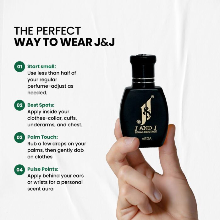 Start with less than half the quantity of your traditional perfume or attar and then increase gradually. Apply it on the inside of your cloths { collar, under arm, upper front facing and cuff etc.}. You can also apply by rubbing a few drops on your palm and gently dabbing on your clothes or by rubbing a few drops behind your ears or on your wrist.